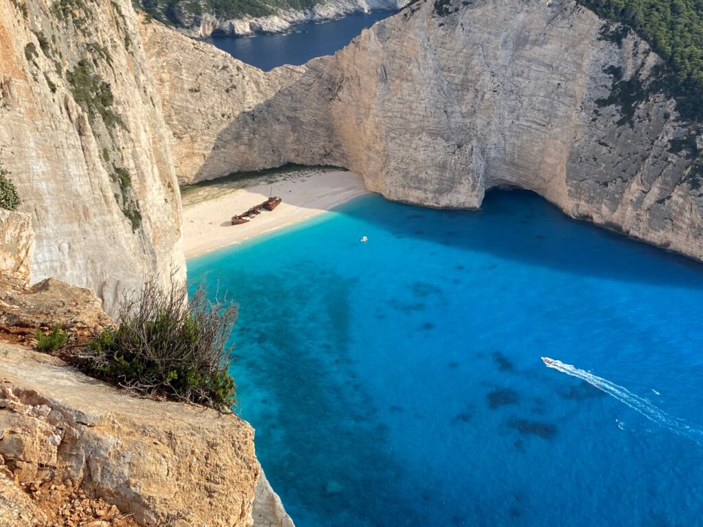 And hidden there in the middle of this enchanting landscape is the coveted beach of Navagio, which always takes your breath away! The waters have a rare turquoise color and – we are not exaggerating – the whole landscape with the steep rocks, the seductive waters, the white sandy beach and the shipwrecked “Panagiotis” in the middle, will win you over from the first moment, when we enter this creek here. Our boat stops 40m from the shore, so you can enjoy and capture this enchanting landscape with your camera.